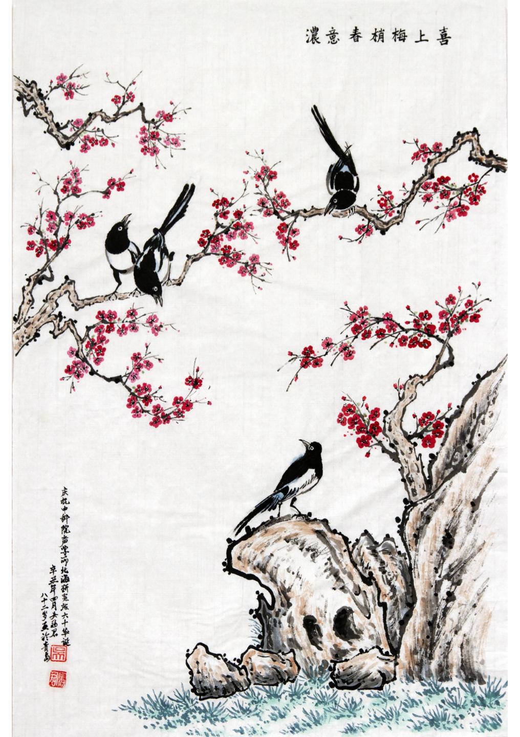 北海研究站建站60周年書畫作品展--吳冠君繪畫作品:《喜上眉梢春意濃》