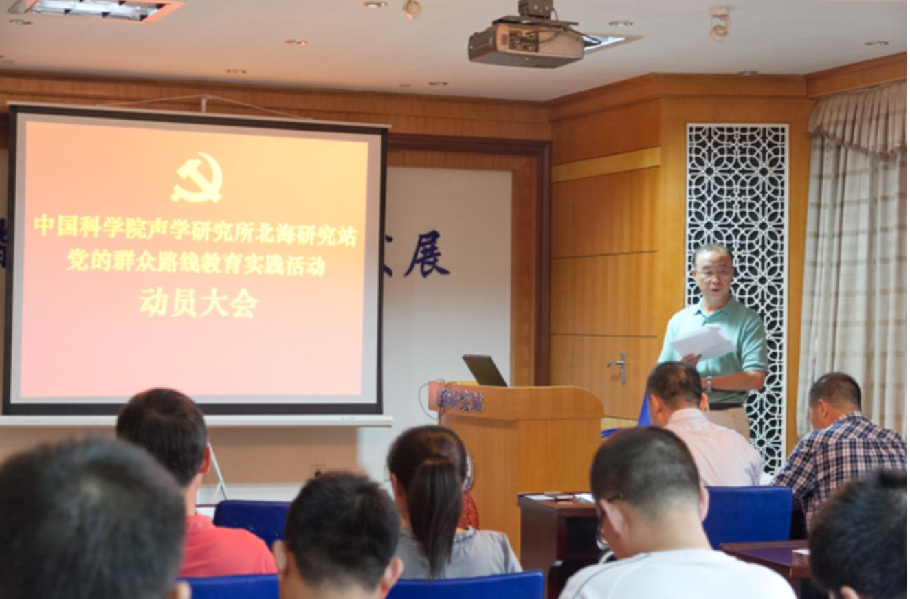 會上站黨委書記張勝堅作動員講話并宣講了《中國科學院聲學研究所北海研究站深入開展黨的群眾路線教育實踐活動實施方案》。他對北海站開展黨的群眾路線教育實踐活動的指導思想、目標任務、方法步驟及活動要求等進行了部署。指出北海站全體黨員干部要按照中央和聲學所的部署要求,高度重視,統(tǒng)一思想,以為民務實清廉為主要內(nèi)容,聚焦作風建設,堅決反對形式主義、官僚主義、享樂主義和奢靡之風。緊密結(jié)合北海站工作實際,著力抓好“學習教育、聽取意見”,“查擺問題、開展批評”,“整改落實、建章立制”三個重要環(huán)節(jié),把握聲學所青島基地的建設機遇,推動科技創(chuàng)新和重大成果產(chǎn)出。