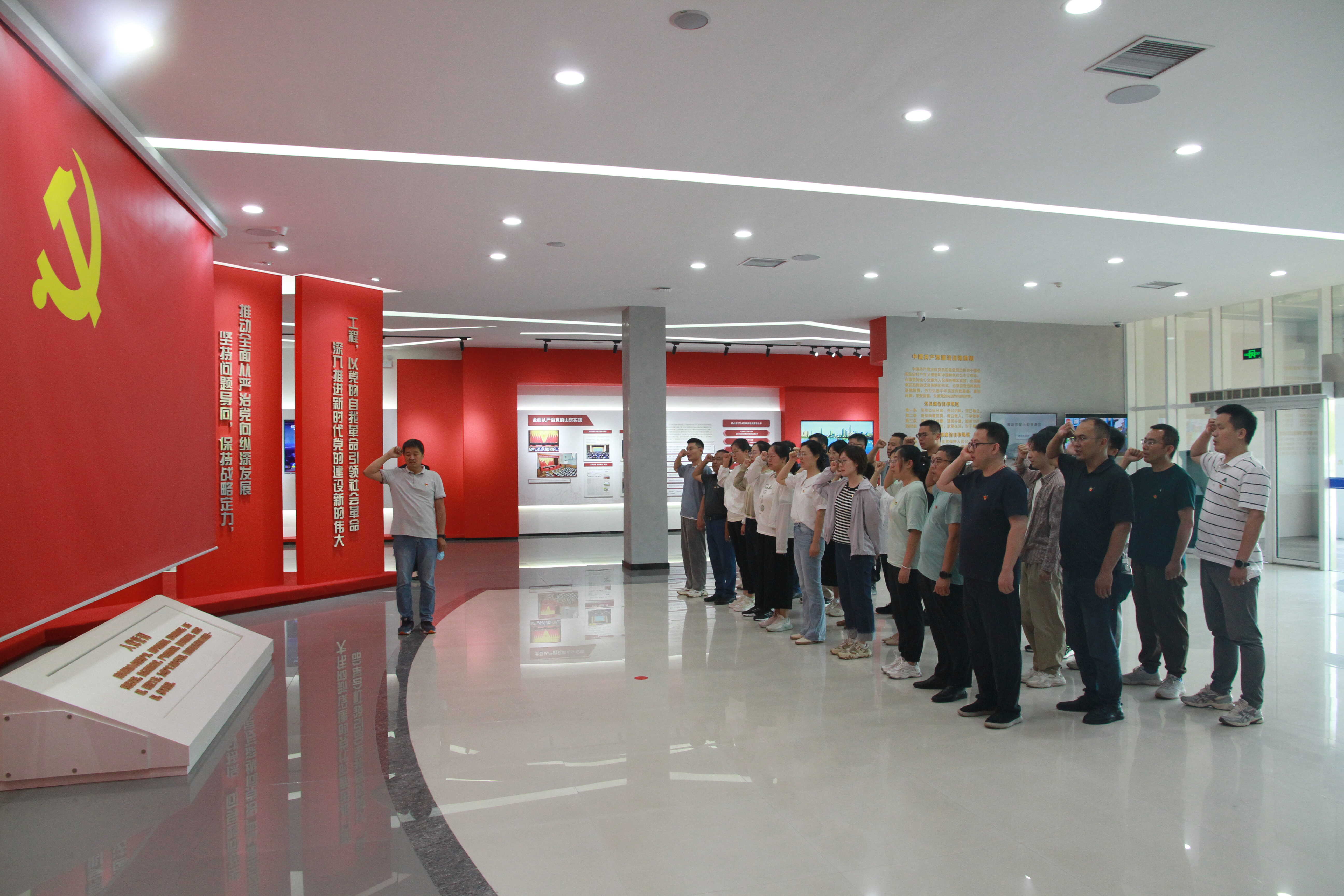 在基地講解員的帶領(lǐng)下,大家依次觀看了“序言區(qū)、時(shí)代強(qiáng)音、正風(fēng)肅紀(jì)、重拳反腐、囹圄空間、奮進(jìn)篇章”六個(gè)單元。展廳利用多種媒介,通過(guò)圖片、實(shí)物、文字等多種形式生動(dòng)形象地剖析了黨的十八大以來(lái)青島市查處的違紀(jì)違法典型案例。一個(gè)個(gè)鮮明案例,一幅幅懺悔畫(huà)面,一段段警示語(yǔ)錄,帶給大家的是深刻的思考和生動(dòng)的警示,時(shí)刻警醒廣大黨員干部要嚴(yán)于律己、守住底線、不碰紅線,自覺(jué)遵守黨的紀(jì)律和規(guī)矩。參觀最后,全體黨員面對(duì)黨旗重溫了入黨誓詞。