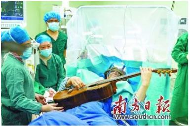 2016年1月25日,深圳第二人民醫(yī)院為一名“音樂家手”患者成功實(shí)施了腦起搏器手術(shù)。患者在清醒的狀態(tài)下,邊接受開顱手術(shù)邊彈吉他。