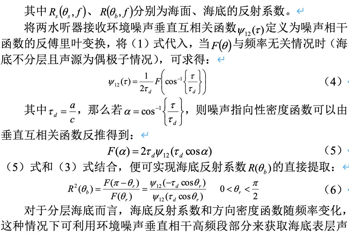 研究人員提出一種利用海洋環(huán)境噪聲直接提取海底反射系數(shù)的新方法
