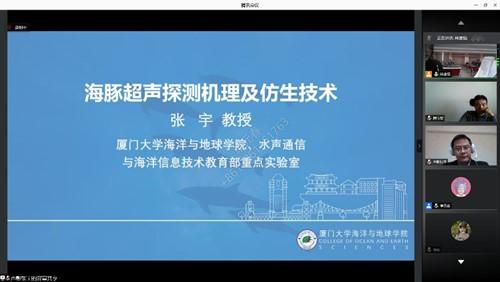 海豚聲學研究屬于海洋聲學、生物學、仿生學和信息學等多學科的交叉領域, 對于生物仿生、水聲聲吶技術、信號處理、水下探測與通訊等方面有重要意義。廈門大學張宇教授帶領團隊多年來對海豚生物聲學原理及其仿生技術的研究,揭示了鯨豚聲吶的探測與感知原理,為我國水下仿生聲納的研制提供了新技術和創(chuàng)新思路。