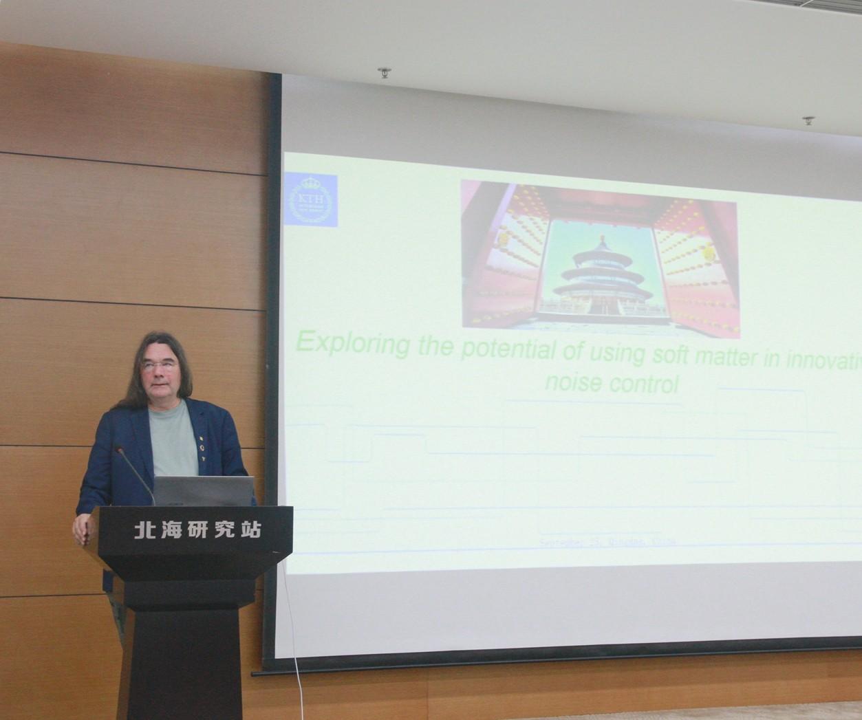 9月25日,由聲學(xué)所科技發(fā)展部和北海研究站共同組織的的學(xué)術(shù)交流活動在北海研究站7樓會議室召開,瑞典皇家工學(xué)院(KTH)分管教學(xué)副校長Leif Kari 教授和澳大利亞西澳大學(xué)(UWA)潘杰教授受邀作學(xué)術(shù)報告。本次活動由北海研究站副站長潘耀宗主持,聲學(xué)所科技發(fā)展部主管黎瑛、青島理工大學(xué)教授劉碧龍、北海研究站首席科學(xué)家慈國慶及北海研究站職工、學(xué)生40余人參加。