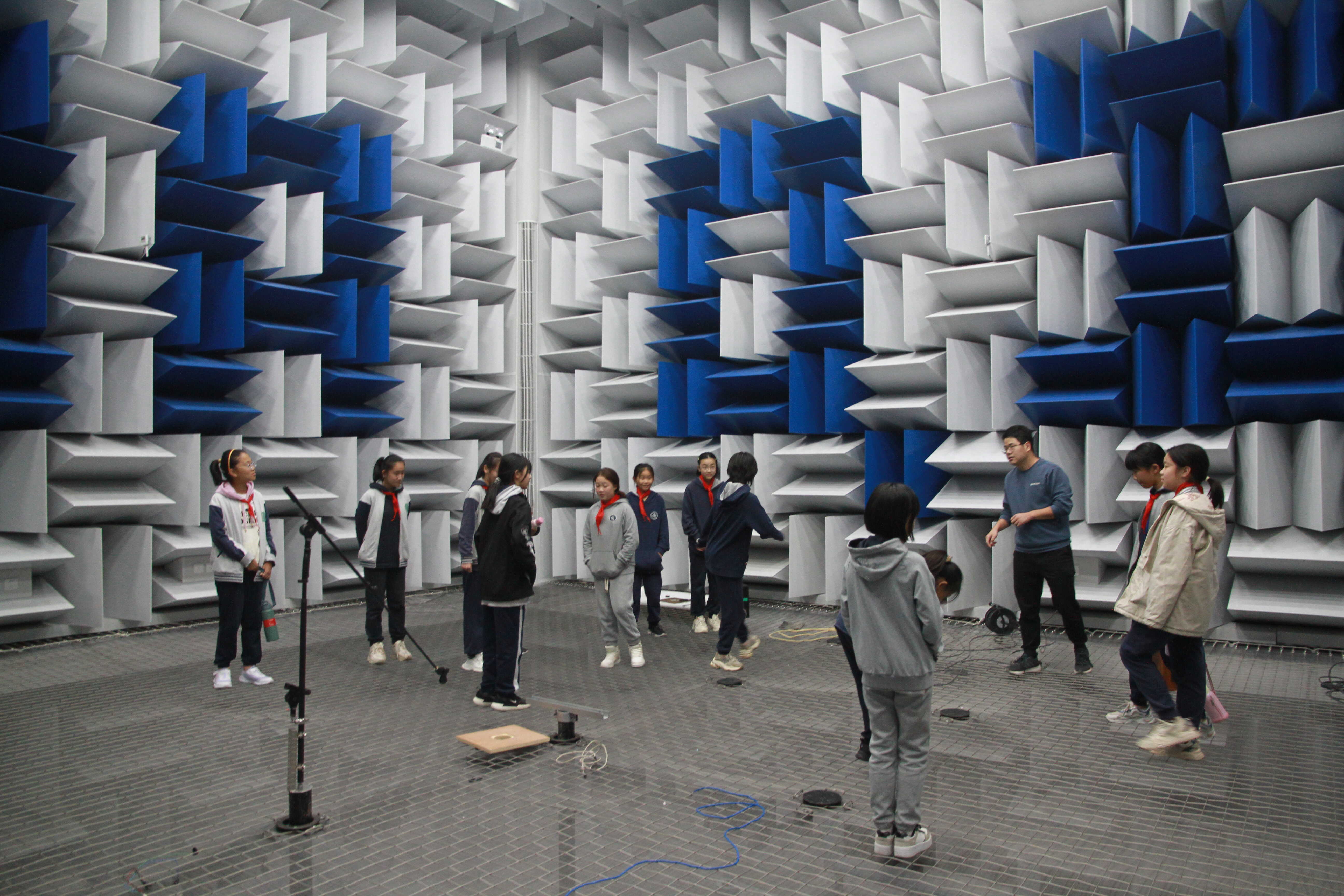 ????在實(shí)驗(yàn)室參觀(guān)環(huán)節(jié),同學(xué)們首先近距離接觸了消聲水池,了解如何利用消聲水池模擬海洋環(huán)境開(kāi)展水聲試驗(yàn),學(xué)習(xí)了水聲換能器的工作原理,初步了解了海洋聲學(xué)知識(shí)和技術(shù);然后,走進(jìn)空氣聲學(xué)實(shí)驗(yàn)室,同學(xué)們被全消聲室、半消聲室、混響室的特殊構(gòu)造深深吸引,親身體驗(yàn)了空氣聲學(xué)在日常生活中的應(yīng)用實(shí)例,加深了對(duì)聲波在空氣中傳播特性的理解,激發(fā)了同學(xué)們濃厚的學(xué)習(xí)熱情。
