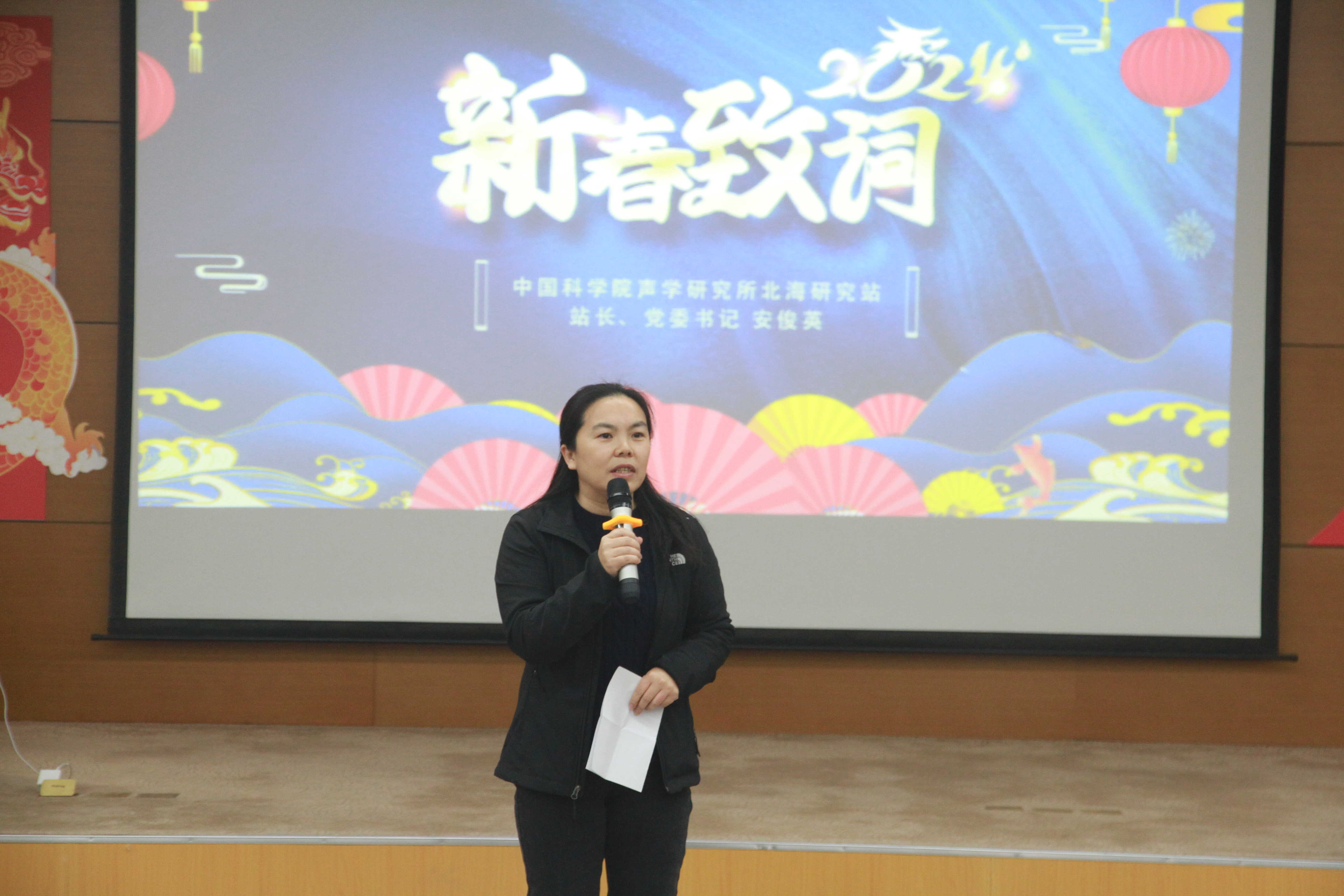 北海站站長、黨委書記安俊英發(fā)表了新年致辭。安俊英表示,2023年是全面貫徹黨的二十大精神的開局之年,一年來,我們堅持以習近平新時代中國特色社會主義思想為指導,恪守國家戰(zhàn)略科技力量使命定位,高質量開展學習貫徹習近平新時代中國特色社會主義思想主題教育,不斷加強黨對科技工作的全面領導,全年新簽訂科研合同經費、到賬科研經費均實現(xiàn)新的突破;科研平臺建設取得新進展,重大科研任務順利推進;人才團隊、組織文化、規(guī)范化、后勤保障能力建設取得新成效,各項事業(yè)邁上新臺階。安俊英表示,這些成績的取得,得益于中國科學院和聲學所的正確領導和鼎力支持,得益于青島市和高新區(qū)管委各級領導和同志們的關懷幫助,也是全體北海站人團結實干的成果,對同志們的辛勤付出表示衷心感謝,希望全體職工在新的一年牢記職責使命,進一步增強搶占科技制高點意識,凝心聚力,協(xié)力攻堅,作出新的成績。
